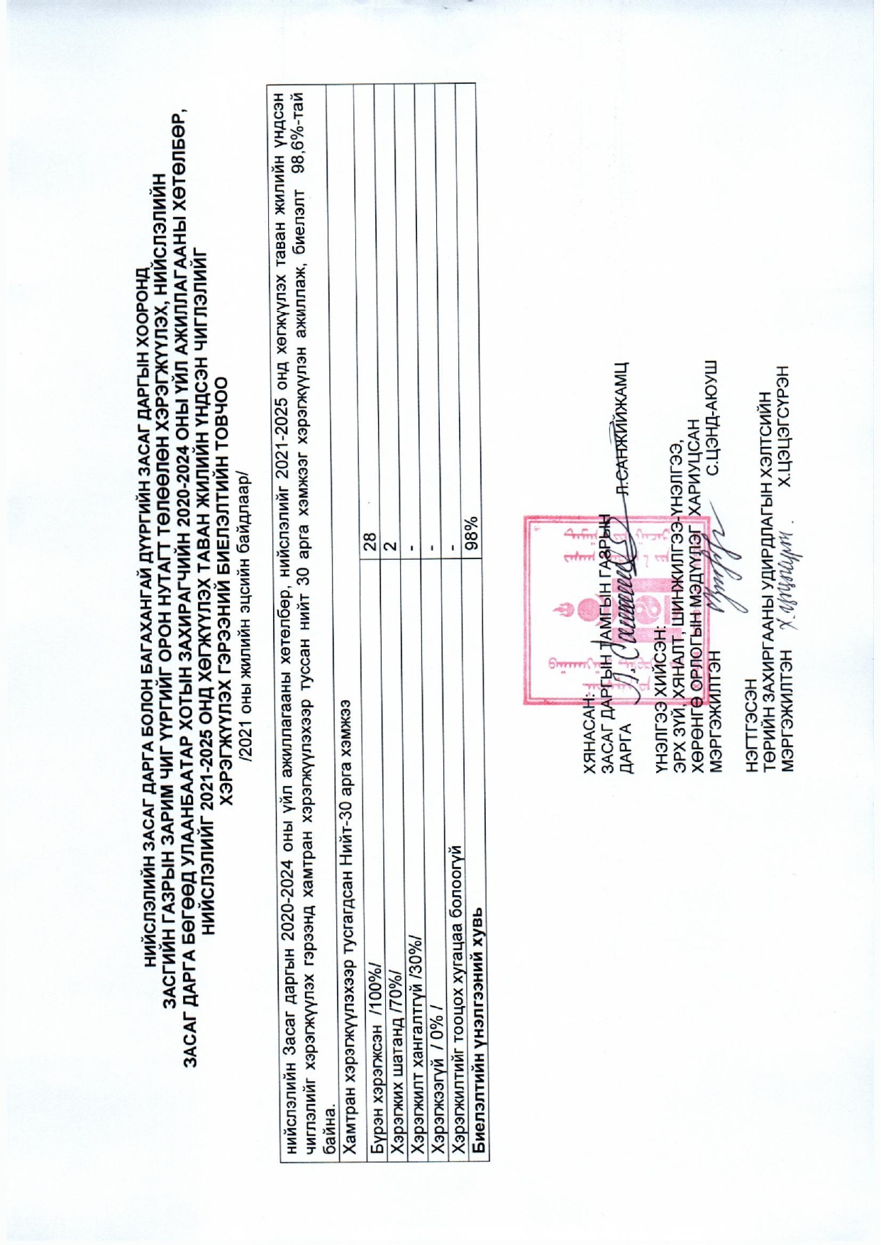 Нийслэлийн Засаг дарга болон дүүргийн засаг даргын хооронд байгуулсан гэрээний биелэлт жилийн эцэс